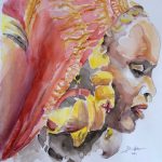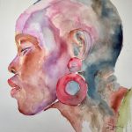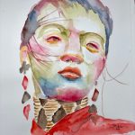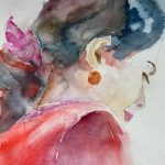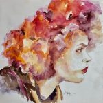 Je peins exclusivement des portrraits et surtout des portraits de femmes. Les chapeaux, les rubans, les cheveux, le maquillage, les bijoux permettent de mieux exploiter la palette des rouges, des ocres et des mauves. J’affectionne particulièrement l’aquarelle pour sa fluidité et sa transparence qui n’efface pas le trtait du crayon.