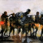 Les personnages que Christophe Hohler met en scène ont quelque chose de fascinant. Le terme de fascinant ne rend pourtant pas avec suffisamment de précision ce qui se produit exactement au moment où nos yeux se posent sur ces personnages. En fait, ces frêles silhouettes s’offrent à nous avec une évidence si déconcertante que nous en sommes bouleversés. En contemplant ces êtres désarmés, saisis à des moments anodins de leur existence, nous réalisons combien nos regards sont conditionnés, entravés. Depuis longtemps, les convenances ont recommandé de ne pas dévisager avec trop d’insistance nos sembla- bles. Ne doit-on pas soigneusement éviter de croiser trop longtemps un regard ? La bienséance nous interdirait-elle aujourd’hui de voir l’autre (de le comprendre) ? Christophe Hohler lève ce tabou, en tant qu’artiste, en tant qu’homme, il refuse de se conformer à ce genre de convention. Alors, quand on lui pose la question d’où pro- viennent toutes ses figures, l’artiste répond en toute simplicité « c’est en peignant que le sujet se révèle ». Voilà un certain temps, en effet, qu’il n’a plus besoin de modèle devant lui pour donner un corps à ses silhouettes. C’est que sa vigilance mentale mobi- lise sa mémoire visuelle et son empathie. Cette fusion guide ses mains, et en quelques traces fulgurantes surgissent Celui-ci, Personnage 12-01, Individu 1, Groupe de réfu- giés… Car il peint vite, très vite. Il faut l’avoir vu, ne serait-ce qu’une fois : en quel- ques lignes colorées, il invente un corps et lui assure l’allure désirée. On comprend alors qu’il a intégré une multitude d’observations et qu’il a mémorisé les formes que peuvent prendre certains états psychiques. Et il les érige en véritables images sympto- matiques. Il modèle la figure avec son jaune, avec le bleu, le rouge. Le rouge surtout, celui de la vie. « C’est en peignant que le sujet se révèle »… Il ne cherche pas l’indivi- dualité, ni la ressemblance, il débusque, avec une précision infaillible qui lui est propre l’humanité dans les êtres. Il en capte une part intime, leur fragilité, leur dignité lumi- neuse. Celle que nous refusons de voir et qui justement ici nous fascine. Claude ROSSIGNOL