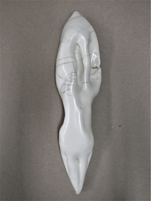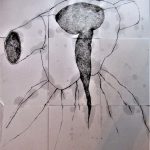 Je couple dans ma pratique dessins et volumes céramiques . De ce jeu de réponse entre la fragilité du papier et la matérialité du grès s’initie un espace de signes, traces éparses ; ma pratique céramique développe une série de pièces en grès émaillé : trophée évoquant l’arme, l’outil, la branche, le pot … Les dessins, sur feuilles épinglées au mur, illustrent et détournent, invoquent et dansent autour.