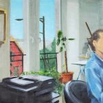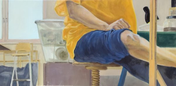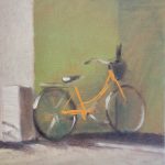 Architecte de formation, la dimension artistique est au cœur de ma vie depuis de nombreuses années. D’abord au travers du dessin, de la danse et de l’enseignement, c’est le médium de la peinture qui s’impose aujourd’hui de façon vicérale et qui me permet d’entrer dans un travail au long court. La dimension rituelle du travail artistique m’intéresse tout particulièrement et m’amène, d’une part, à la collection de mots, de phrases poétiques, de photos et d’autre part à des moments de peintures qui s’apparentent à des protocoles toujours en mouvements du type : peindre tous les jours sur un même format, peintre à partir du souvenir, peindre à partir de «d’hypothèses poétiques». Si ma pratique est principalement figuratif, l’aspect protocolaire m’invite à ne pas prendre le sujet pour sujet, mais plutôt comme un support au travers duquel je découvre petit à petit des thèmes transversaux comme la mémoire et l’intensité du quotidien. Réapparait alors, pinceaux faisant, derrière la peinture d’une cuillère, d’un vélo d’un reflet ou d’une composition picturale, l’obsession très architecturale de la lumière et l’équilibre toujours instable de la danse.