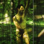 Chaque identité a son inventeur, toutes n’ont pas vocation au mystère. Car on peut considérer l’opposition entre regarder une photographie et résoudre une énigme, mais faut-il les opposer dès lors que tu les conjugues ? Le débat de la photographie et de la gravure est au centre de tes dispositifs. Mais au centre centrifuge, si l’on peut dire, car l’une et l’autre fuient le centre. Peut-être les deux directions opposées à l’origine se rejoignent-elles : formes intermédiaires, témoins de la connivence des techniques ? Un point de fuite qui prend l’habit de la gravure sans perdre l’identité de la photographie ? Soudain tout se brouille dans la foule des vibrations. Un certain mystère, en effet, subsiste : mystère de l’identité, qui n’est qu’allusivement révélée, plongeur, chasseur, faunes ; mystère de la suggestion, de l’effet, de l’efficience d’une photographie qui voudrait animer un corps, qui semble immobile mais se déploie, diptyque, triptyque, séquence, sillons de la gravure à la surface de la plaque de cuivre ; mystère de la nuit, des pièces d’eau et des forêts dans lesquelles le jeune héros est invité à entrer. Il crie : « L’usage de ma jeunesse fut rapide et rempli d’agitation. Je vis de mouvement et ne connais pas de borne à mes pas ». Stéphane Gounel
