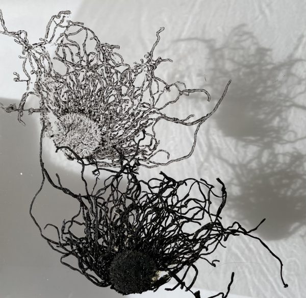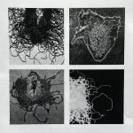 L’observation attentive de la nature et de ses composants est au cœur de ma pratique. Je considère l’ensemble de mon travail comme une sorte de réserve accumulant et abritant mes tentatives de rendre visible la vulnérabilité et la ténacité du monde végétal et minéral. Souvent en symbiose avec le dessin et la gravure, j’expérimente d’autres matériaux. Les recherches fragiles et éphémères sont « préservées » par la photographie, qui à son tour me fournit un moyen d’explorer les changements d’échelle. La lumière, qu’elle soit projetée, réfléchie ou bloquée et la transparence ou la superposition peuvent interagir et parfois déconcerter.