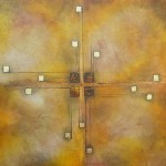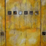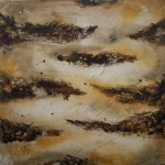 Bruns, ocres, couleurs terriennes, jaunes orangés forment les fonds. Rien de fixe, de statique cependant…les nuances se déclinent au gré de la lumière. Les aplats s’associent pour se dissocier sitôt la prunelle de nos yeux posée.
