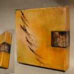 L’écriture y figure toujours, sentinelle postée en rappel d’un passé qui nous a permis de décoder le monde. Mais elle évolue ; d’inclusions figée, elle se glisse à présent sur toute la surface en signes lancés comme des messages. Tantôt, tout en douceur et en langueur, les caractères diffusent une poésie infinie. Tantôt hérissés comme des piques, mordants comme des avertissements, ils sont cris muets à écouter.