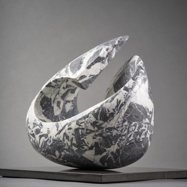 Immersion dans la Nature Sculpter est à la fois un travail physique et intellectuel. Tout mon processus artistique débute par l’observation de la nature, la contemplation des mystères cosmiques. Je me laisse porter par les énergies primordiales des quatre éléments : la Terre, le Vent/Air, l’Eau et le Feu. Le spectacle de la nature crée une capacité inégalée à captiver nos sens, à susciter des émotions et à stimuler l’imagination. Un doux bruissement de feuilles dans une forêt, la danse fascinante de la lumière sur l’eau, les couleurs vibrantes de l’univers… Conceptualisation Je plonge dans mon imagination, mêlant observation et intuition, j’interprète des formes naturelles que je vais changer selon mes ressentis pour créer des œuvres qui transcendent les limites de la réalité, jusqu’au point de convergence entre ce que je vois et ce que je ressens. Cela donne à mes sculptures un aspect biomorphe qui permet de prendre une direction plus abstraite. Sélection des Matériaux Pour moi le choix des pierres est le prélude à la sculpture, qu’il soit guidé par une idée première ou que la création soit induite par les pierres elles-mêmes. Je passe du temps dans les carrières pour trouver les blocs de marbre qui serviront de toiles vierges à mes créations. Chaque bloc est unique, porteur d’une histoire millénaire et d’une beauté brute. Chaque pierre va guider mes mains dans un long dialogue fusionnel. « C’est comme un corps à corps avec la matière où chacun impose ses règles » Barbara Hepworth. Processus de Sculpture La sculpture en taille directe est physique, les machines sont lourdes, bruyantes, ce travail produit beaucoup de poussière. Chaque coup de ciseau est une danse entre moi et la matière, chaque éclat de pierre une nouvelle révélation. Une fois la forme de base ébauchée, je me concentre sur les détails, je laisse certaines parties brutes, tout en travaillant les autres. Chaque geste est empreint de détermination et de vision. La sculpture se fait aussi en écoutant le marbre chanter : il est important d’écouter pour respecter la pierre et ne pas dépasser ses limites. Finition et Polissage Une fois que la sculpture a achevé de prendre forme, je consacre beaucoup de temps à la finition, au ponçage et au polissage, révélant la splendeur cachée du marbre. Certaines pierres ne révèlent leurs veines et la véritable profondeur de leurs couleurs qu’à la fin de ces traitements. Chaque étincelle de lumière capturée sur la surface de la pierre, polie comme une pièce d’orfèvrerie, est un hommage à la beauté du marbre. Réflexion et Présentation Enfin, une fois la sculpture achevée, je prends un temps pour contempler mon œuvre. L’objectif ultime est que le spectateur voie mes sculptures en marbre non seulement comme des objets d’une esthétique aboutie, mais aussi comme des portails vers un monde intérieur et symbolique où la beauté et la signification se rejoignent.