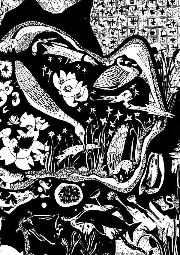 Travaillant sur de grands formats ou des plus petits, j’aime raconter des histoires dans mes illustrations. Certaines fourmillent de détails et de petites choses à voir à la loupe, d’autres sont plus sobres et nues sur la page.