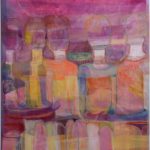 Composée d’œuvres en céramique, de dessins et de peintures sur toiles, l’œuvre de Karima Duchamp est polymorphe. De sa formation de céramiste, elle a gardé le goût de la matière qu’elle travaille et retravaille afin d’atteindre légèreté, transparence et luminosité. Elle passe d’un médium à l’autre, afin que chacune des techniques enrichisse sa création. La matière de la terre, les couleurs printanières de sa palette, la lumière qui émane de ses œuvres, toutes ces manifestations visuelles et matérielles révèlent son cheminement créateur. Née en France de parents algériens, Karima Duchamp est animée par les liens conscients et inconscients liés à ses origines, se sentant passeuse d’histoires de femmes. Elle puise son inspiration dans les fresques historiques, l’ornementation et l’architecture vernaculaire. Dans une réduction de formes, elle cherche à aller à l’essentiel. Cette épure est motivée par une sensibilité au passage du temps dans une forme de contemplation et de nostalgie offrant un langage particulier pour lire et imaginer le monde.