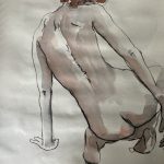 Peintre de formation, je viens m’exercer au dessin anatomique dans l’atelier pour faire mes gammes. J’utilise diverses techniques telles que la mine de plomb, l’encre, l’aquarelle que je mixe parfois entre elles. C’est bien souvent l’anatomie propre du modèle qui m’impose une technique adéquate pour le représenter.