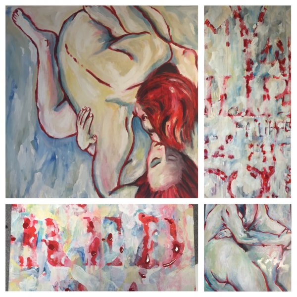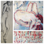 Par ailleurs, ces nus se sont imposés dans ma peinture récemment et les corps s’enlacent dans un entrelacs pictural à la frontière de figuration et de l’abstraction. Sorte de cartographie linéaire des corps immergés dans la masse picturale.