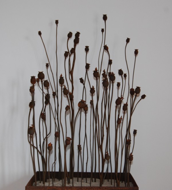 Dans ma pratique, j’aime l’expérimentation libre. C’est avec gourmandise que j’ explore le dessin, les encres, les pastels et l’aquarelle, la gravure, le modelage, le collage, les installations végétales et minérales. C’est la vie qui nourrit mon inspiration, touchée par les sentiments humains et la beauté des cadeaux de la nature. « Guerriers et gardiens, imparfaites, mémoire dispersée, rêveries, entre terre et ciel, pierres éphémères, lorsque la rouille paraît… » sont quelques thèmes autour desquels j’ai divagué. L’art me permet de passer de mon ressenti au geste, de mes émotions à ce qui est représenté, et du silence de mon intériorité à l’objet réalisé. Celui-ci n’est que le reflet de mon regard sur le monde qui m’entoure. Guidée par un brin de poésie, agitatrice d’émotions.?..