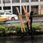 Son œuvre convoque à la fois le corps, les matériaux et le mouvement dans l’espace (œuvres performatives, peinture, sculpture). Ses pièces s’élaborent en série, à partir de composantes hétéroclites.