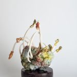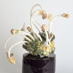 Pascale Klingelschmitt vit et travaille en Alsace (France). Elle est diplômée de l’ISBA de Besançon (DNSEP/art) et d’une formation professionnelle en céramique (Maison de la Céramique-Mulhouse). Par son travail, elle tente de répondre par des matières dures (céramique/verre) aux questions liées aux structures matérielles des organismes vivants. Souvent elle appréhende et confronte les différents acteurs des règnes du vivant dans une relation combinatoire, ce qui l’amène également à traiter une relation au corps. L’hybridation, la métamorphose ou l’entropie sont appréhendées et convoquent intrigue ou dégoût. Elle tente d’exprimer une nouvelle vision moins aristotélienne du monde dans laquelle une hiérarchie plante-animal-homme semble avoir atteint ses limites. Sa démarche se construit essentiellement autour d’installations ou de pieces uniques mettant souvent en oeuvre plusieurs médiums au sein d’expositions individuelles ou collectives au niveau national, européen ou international.