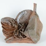 Je travaille le grès de manière franche et libre. Les traces, les empreintes, parfois même les accidents, participent à rendre mes créations expressives. La cuisson au gaz, en haute température, réserve une part d’aléatoire qu’il s’agit d’accepter et qui offre à chaque pièce un caractère unique. Comme témoignage des civilisations et de leurs rituels, des gestes ancestraux ont traversé les millénaires et se trouvent aujourd’hui entre mes mains. Mon intérêt réside dans ce rapport au temps, dans l’archaïsme des techniques de fabrication, l’usage et les formes en tant que support d’expression, leur pérennité, mais aussi leur fragilité. Les objets présents dans la mémoire collective ou dans notre quotidien, leurs détournements, les rapports de forces et de pouvoir qu’ils incarnent, nourrissent mon imaginaire et questionnent la relation au « sacré ».