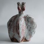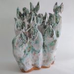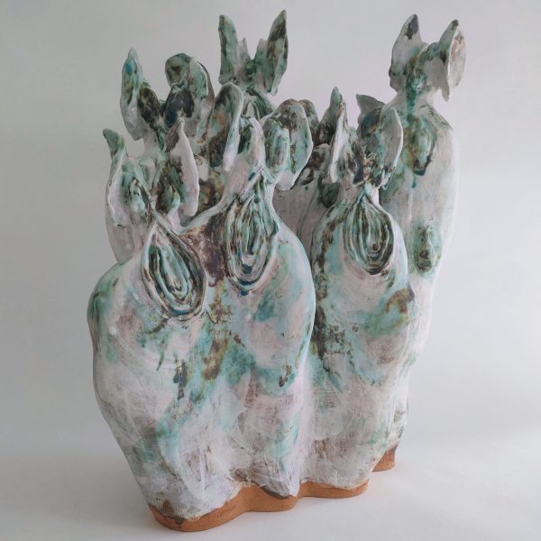 Lors de mes dernières années d’études, le fil conducteur dans mes travaux artistiques était le corps et l’enveloppe corporelle. C’est toutes les significations de celui-ci à travers la sociologie, la philosophie qui m’ont fascinées … L’inspiration du corps et de son double est toujours à la base de ma création ; j’aime expérimenter différents matériaux : la peinture, le dessin et l’argile. Mon travail actuel s’est tourné plus précisément vers la céramique. Même si ce matériau demeure archaïque, il ne cesse de réinterroger nos propres origines. Il permet d’exprimer pleinement ses émotions, c’est un vecteur de recherches sans limite ( techniques et théoriques) pour celui qui veut explorer un monde à la fois intérieur et extérieur. A travers mes réalisations, je tente de faire fusionner des notions d’hybridation entre le végétal, l’organique et le minéral. Mes sculptures sont anthropomorphes , elles nous dévoilent des formes tout en rondeur évoquant des corps multiples. Elles sont devenues le réceptacle de nos émotions. Ce qui prédomine est la puissance de l’imaginaire…