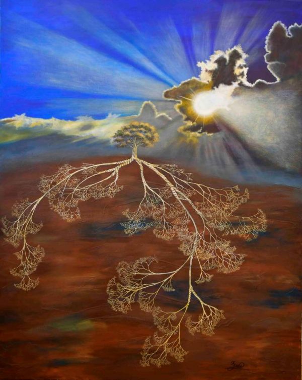 Dans ses peintures, toutes ancrées dans la profondeur de ses sentiments, on retrouve des traces audacieuses de la nature et de sa proximité avec la nature.