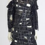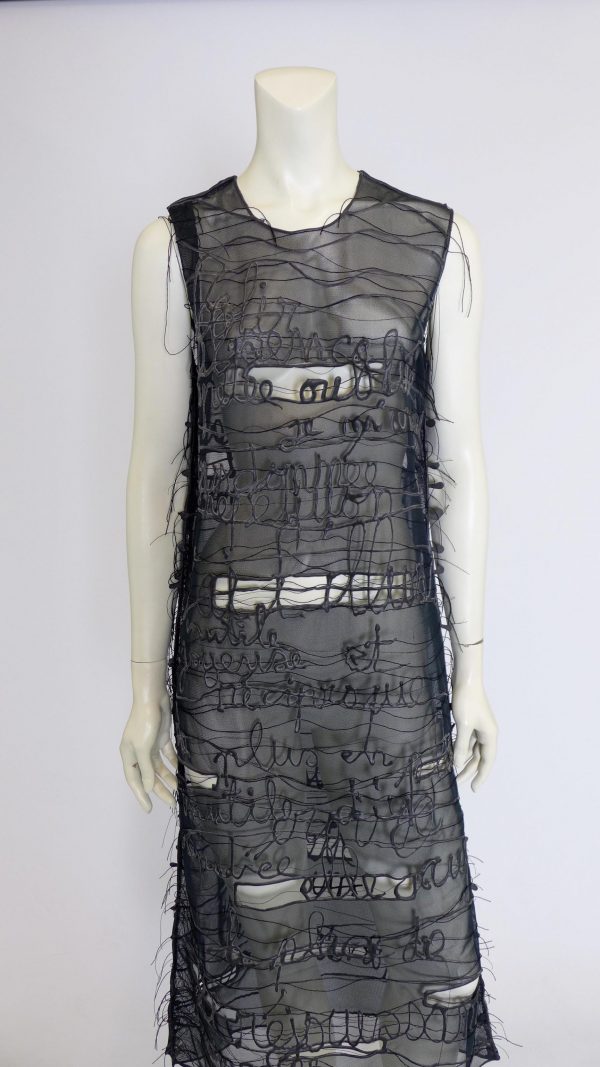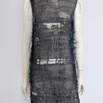 Jouant avec l’idée d’un vêtement « seconde peau », frontière entre l’intime et le monde extérieur, la matière alterne entre opacité et transparence allant jusqu’à faire référence, par le dessin ou des découpes, à l’anatomie.