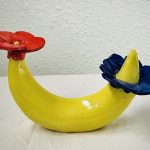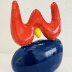 La céramique prolonge cette recherche dans la tridimensionnalité. Les volumes arrondis, les courbes dominantes, les formes épurées deviennent matière vivante. Là où le dessin explore la profondeur par le contraste du noir et du blanc, la sculpture affirme la présence par la couleur. Les teintes franches — jaune solaire, rouge vibrant, bleu profond, noir dense — fonctionnent comme des forces émotionnelles.