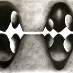 Dans ses dessins en noir et blanc, la pierre noire caresse le papier et sculpte la lumière. Le clair-obscur modèle les volumes avec douceur ; le grain, les transitions veloutées et la composition épurée créent un espace où l’ombre et la lumière deviennent langage. Les formes biomorphiques y demeurent volontairement ambiguës : elles invitent à une lecture intime, à une projection personnelle. Les « Fleurs », aux formes sensuelles et féminines, évoquent une symbolique proche de l’univers de Georgia O’Keeffe, tandis que d’autres œuvres interrogent la perception du corps et la porosité des genres, dans un dialogue intérieur/extérieur, masculin/féminin, qui n’est pas sans rappeler certaines explorations de Louise Bourgeois.