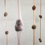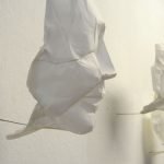 travaille avec le béton et des bas fins (collants) pour créer des installations envahissant l’espace, des sculptures aux formes organiques ainsi que des œuvres figuratives. Certaines de ses œuvres sont dotées de plusieurs couches, enveloppes et peaux. Elle expérimente différents matériaux et effets de surface. À travers son travail, Claudia Borowsky recherche cet instant d’équilibre fragile, cet état de suspension entre l’esthétique et le dérangeant, entre le familier et l’étrange. Un autre ensemble de son œuvre est constitué de sculptures en papier. Elle façonne des visages filigranes, des têtes et des corps uniquement en pliant, froissant et courbant une seule feuille de papier.