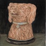 Je peins les objets que j’aime, ceux qui me font rire, m’inquiètent, me trompent ou m’interrogent. J’essaie de tracer ce qu’ils portent de fiction. Je les choisis pour ce qu’ils disent de nous, les humains. J’apprécie ces longs moments d’observation et de concentration pour les peindre. Fascinée par les faux-semblants, je m’attache à ce que les images que je crée ne s’offrent pas d’emblée: les choses changent de rôle, les identités se déplacent, les apparences se troublent. Les travestissements, les masques, les décors traversent mon travail, qu’ils prennent la forme de peintures à l’huile sur bois ou sur toile, de créations scénographiques ou de compositions de motifs textiles.