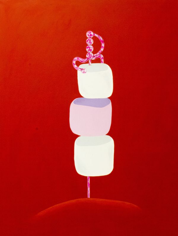 L’application de la couleur par aplat majoritairement est restée similaire depuis que j’ai commencé à peindre sur des toiles. L’aplat me permet de voir les couleurs. Mes contrastes sont souvent les mêmes, j’aime rehausser des couleurs claires avec du noir en petite quantité. Seules les gammes de couleurs évoluent de toiles en toiles.