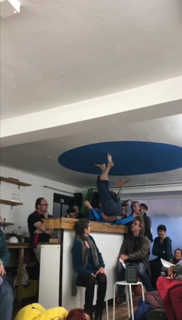 D’un autre côté, je suis pleinement intéressée à la transmission. C’est pourquoi je donne des cours où l’on développe la conscience corporelle et l’usage créatif du mouvement ainsi que la perception en action. Ce sont en vraie des ouvres d’art collectives, des ouvres de vie en action artistique.