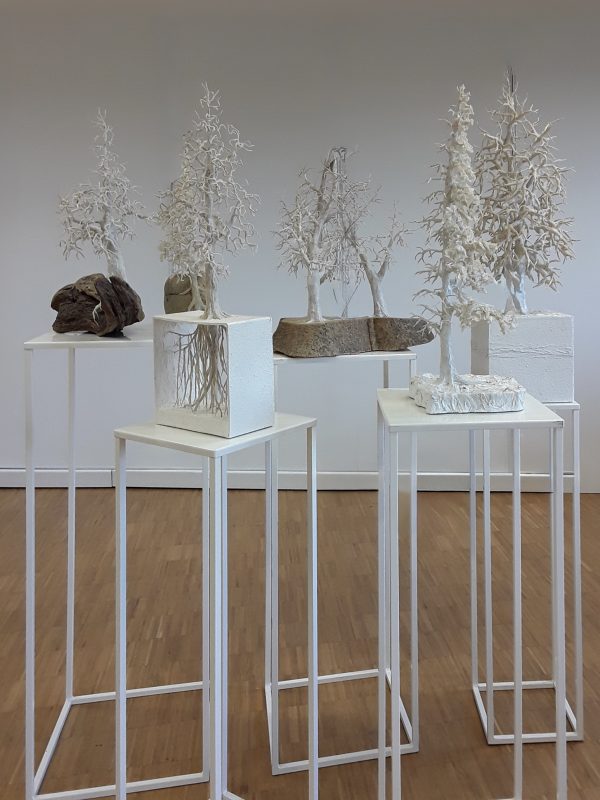 Eloge de la lenteur, aucune urgence, juste du temps et du doigté. A l’atelier, mes sculptures papier sont abouties au bout de dizaines d’heures de pratique, et encore !… Depuis plus de 30 années je transforme quotidiennement des matières (papier, bois, métaux, plastiques, produits naturels et chimiques) Mes thèmes :  • Les arbres en papier de soie correspondent à une halte en forêt, une forêt primitive, avant que la couleur n’apparaisse, un monde fantôme qui gomme le clinquant et l’agitation du présent. • Drôles de bêtes ! Volant, rampant, gambadant, sautant … toutes les formes se mélangent et s’additionnent en un bestiaire improbable. • Sculptures abstraites tout en fils de papier publicitaire. Pas de concept, ni de théorie, juste une poésie du concret, pour que l’improbable trouve une réalité.  Richard Chapoy-promeneur