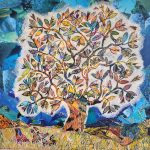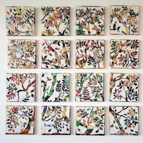 Elle y inscris des mots, des personnages, des arbres, des oiseaux, dans l’émotion du moment où la poésie d’instants vécus. Lorsque les mots lui manquent, il reste la toile, la peinture, la sculpture en papier ou en porcelaine …