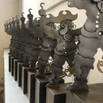 Plasticien sculpteur né à Mulhouse, je pratique la sculpture depuis 1999. Je travaille le métal. J’ai démarré ma pratique artistique par la réalisation de tableaux en fils de fer qui racontent des histoires d’hommes, de femmes. Instantanés sortis de mes moments de contemplation du monde contemporain, j’aborde au fil des ans différentes techniques de travail du métal : d’abord des tôles découpées aux dessins précis et acérés, figuratifs et graphiques puis des pièces en acier découpées au laser. Depuis 2001, je réalise des sculptures en acier découpé thermolaqué ou en acier corten qui sont exposées, et certaines vendues partout en France. Mes sculptures souvent anthropomorphes, sont des invitations à se projeter ailleurs, à se détacher de la rudesse du monde pour le percevoir avec humour et poésie. La nature, le vivant, les hommes, les animaux sont des sujets récurrents dans mon travail. Je développe régulièrement des projets de commandes publiques et privés, aussi bien pour des architectes, promoteurs immobiliers, mairies, que pour des particuliers.