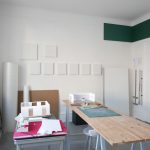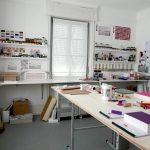 Un espace est destinée aux projets, confection de supports, de maquettes d’exposition et emballage des travaux terminés. Les autres espaces sont utilisés pour la peinture essentiellement.