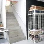 Der Eingang zum Atelier befindet sich auf der Rückseite des Hauses, am Ende des Hofes, hinter der Tür mit der Aufschrift „BASEMENT” (auf Deutch „Keller”).