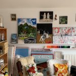 Mon atelier est un laboratoire où se mêlent techniques et messages. Peintures, sculptures et collages cohabitent pour former un univers fantaisiste, oscillant entre humour et engagement social.