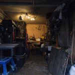 Mon atelier, ce sont en fait deux espaces : un garage en béton qui accueille la pierre et le métal, un grenier qui accueille réflexion, dessin et terre.
