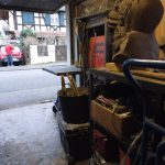 Le premier est pour les températures supérieures à 7°C, qui sont pour moi les températures supportables pour le travail en quasi plein air. Oui, parce que je travaille toujours avec la porte du garage ouverte sur la rue, afin de chasser plus facilement vapeurs de soudure ou poussières de pierre et bénéficier de la lumière naturelle. Autant dire que j’y suis de mars à novembre. C’est aussi un endroit d’échange, l’école du Hoberg n’est pas loin et les enfants passent quatre fois par jour scolaire dans ma rue, qui est d’ailleurs une rue scolaire, des liens inter-générationnels s’y tissent.