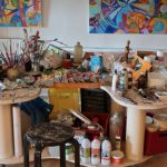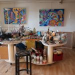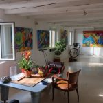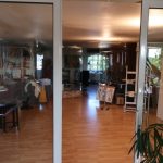 L’atelier s’ouvre sur surface de 50 m2 et donne accès sur une surface de 30m2 attenant à une autre pièce de 80m2 dont une partie habitation de 30m2 séparée par des panneaux de verre . Des fenêtre permettent d’apprécier la forêt noire et de l’autre côté, les vosges. Un endroit unique qui inspire à la création. Seul inconvénient, la hauteur sous plafond qui est limitée à 2,20m!