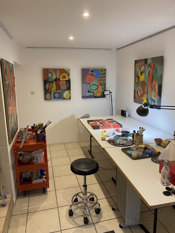 Atelier personnel d’Irena Tatiboit est installé depuis plus de 20 ans dans le sous-sol du bâtiment avec l’accès facile depuis la cour. C’est un lieu de travail et du stockage de ses créations plastiques ainsi que des livres d’art sur la danse qu’elle réalise.