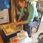 Voici mon lieu d’expérimentation où je peux allègrement salir l’espace et cuire mes pièces si nécessaire. A la base ce bâtiment était un garage où j’ai fait installé l’électricité pour le four céramique et j’envisage la fabrication d’un four à raku et pour les cuisson primitive (projet en cours). J’aimerais par la suite investir le jardin…