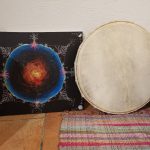 Parmi mes instruments, il y a les tambours (chamaniques et le grand tambour harmonie sous lequel on peut se coucher), les djembes, les harpes (la celtique Mélusine et sa petite sœur troubadour), un gong, des bols tibétains, un bol de cristal, un rav drum, des bâtons de pluie, cloches, grelots, guimbardes … Ainsi qu’un certain nombre d’instruments-nature, des instruments que j’ai créé avec des éléments naturels.
