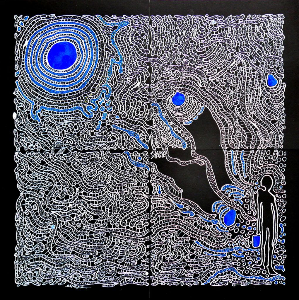 « blue sun » encres acryliques – papier BlackBlack de Fabriano