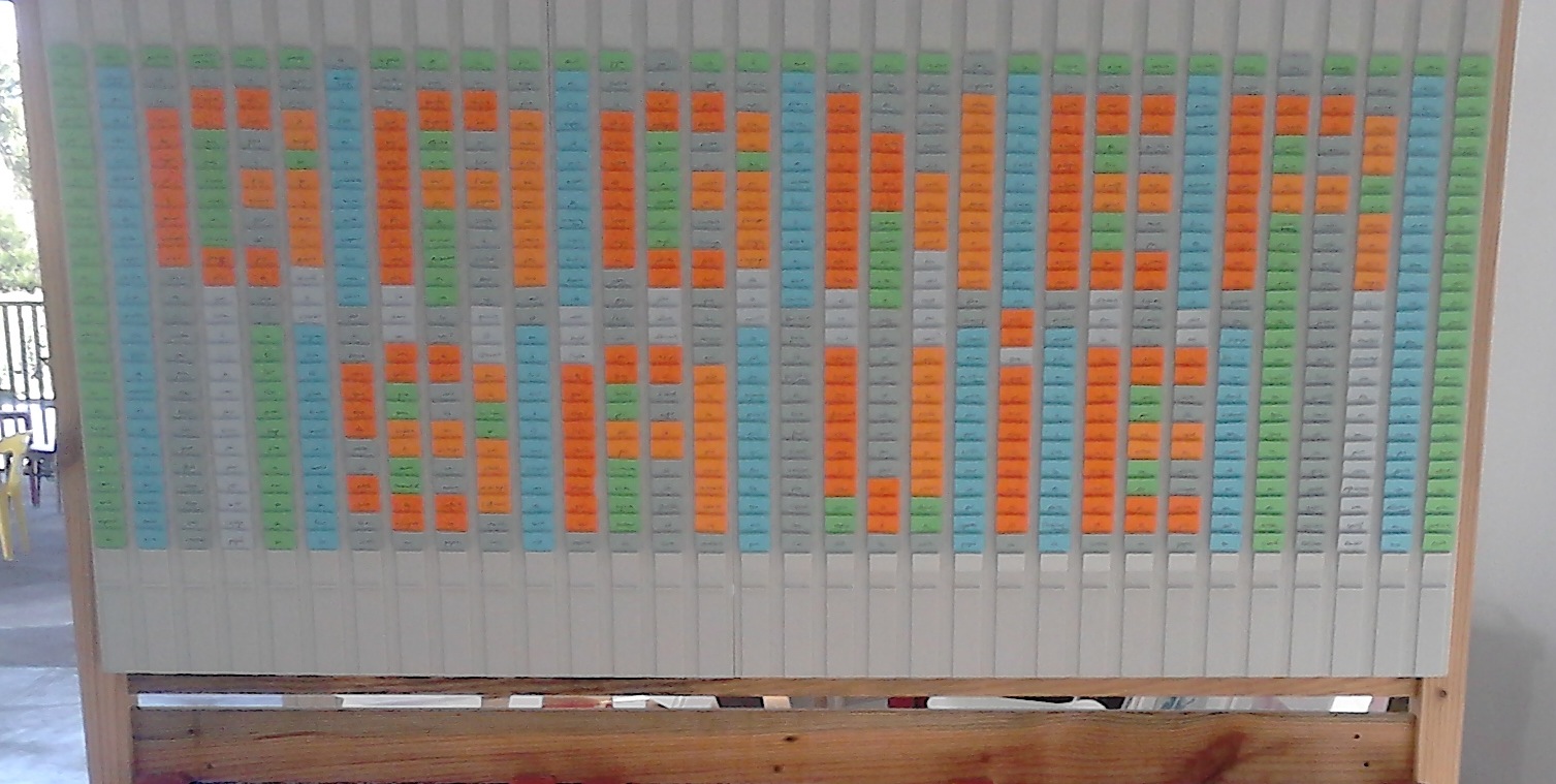 Gagner sa vie, texte à lire de loin puis à déchiffrer en continu sur 832 fiches en T