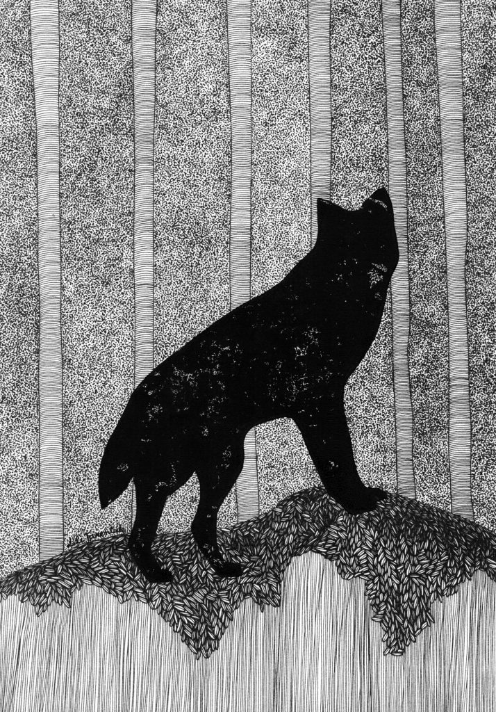 Loup, habitant de la Terre – Gravure et dessin à l’encre, 21×30 cm